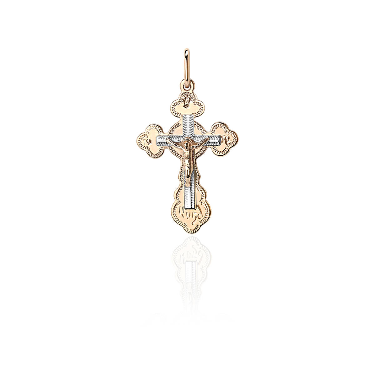 Крест нательный из двух цветов золота 585 пробы без вставок 01Р760807