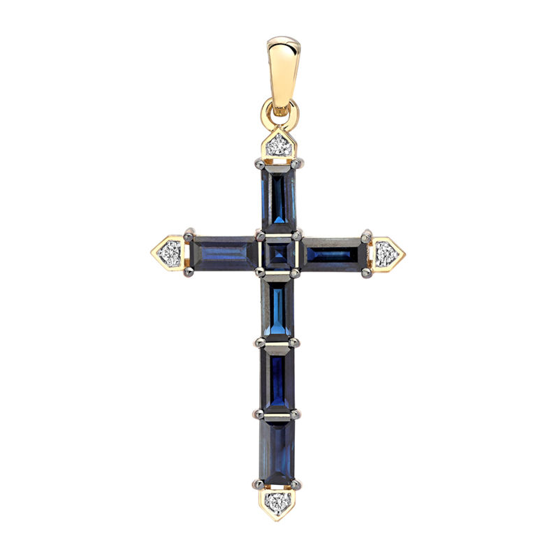Подвеска из желтого золота 585 пробы с сапфиром и бриллиантами 01Р631087-1