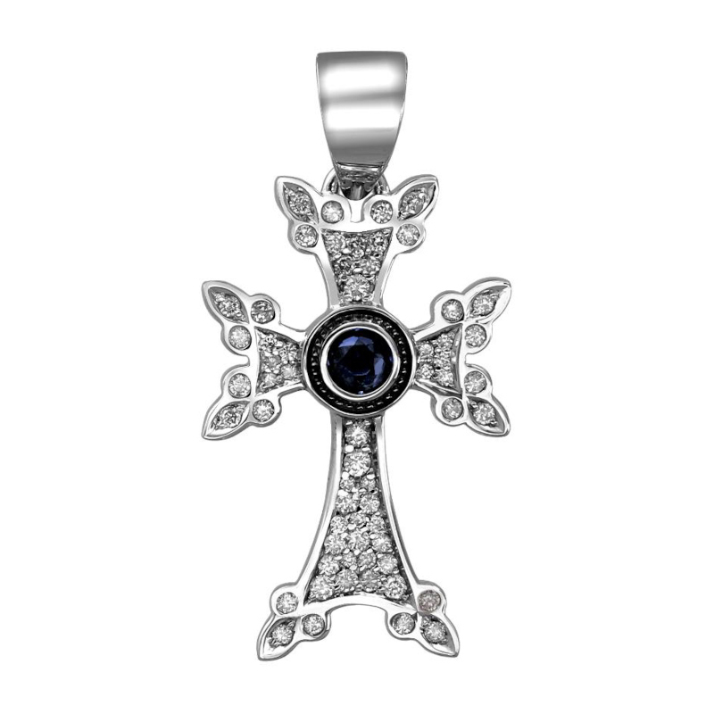Подвеска из белого золота 750 пробы с сапфиром и бриллиантами 01Р670910-1