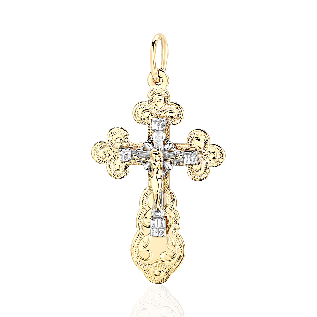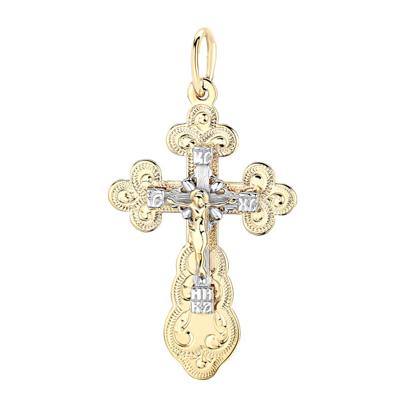 Крест нательный из двух цветов золота 585 пробы без вставок 01Р761107Ж