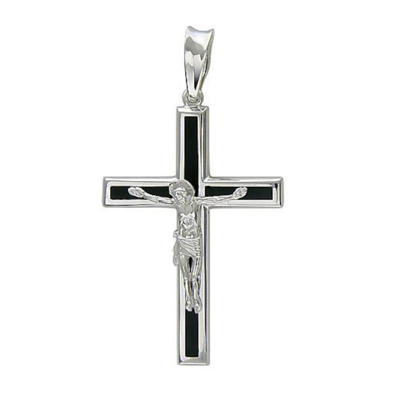 Крест нательный из белого золота 585 пробы с агатами 01Р420982-1