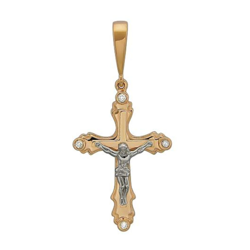 Крест нательный из двух цветов золота 585 пробы с бриллиантом 01Р660717