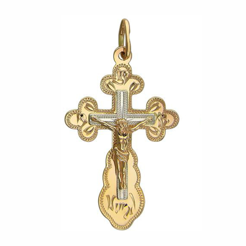 Крест нательный из двух цветов золота 585 пробы без вставок 01Р760626Ж