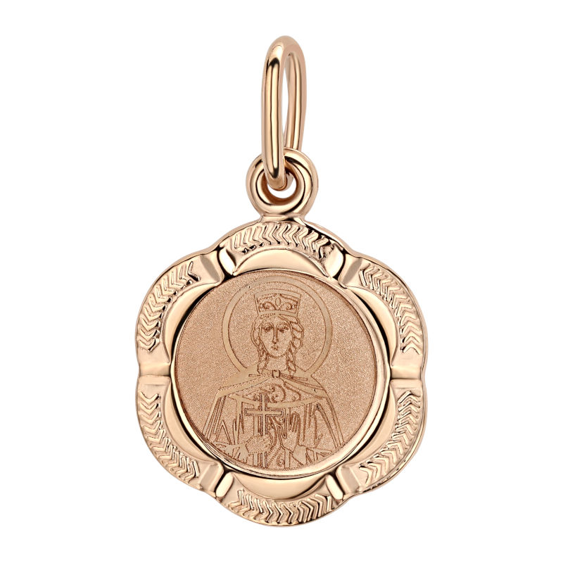 Подвеска "Святая Екатерина" из красного золота 585 пробы с религиозной тематикой несет глубокий смысл. Она символизируют принадлежность человека к определенной вере, поэтому обладают особой ценностью для своего владельца. На подвеске изображен образ Святой Екатерины.