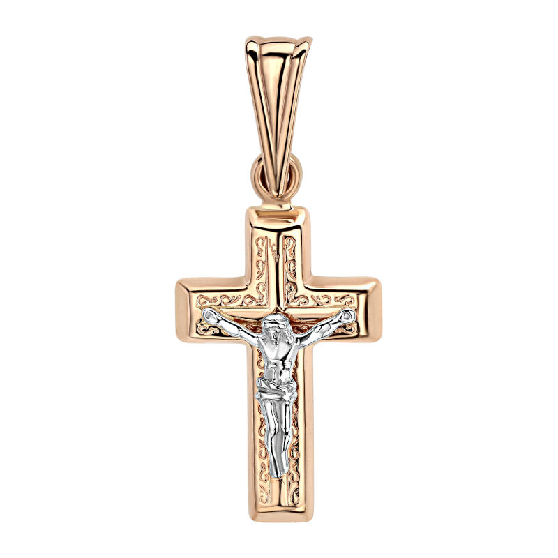 Крест нательный из двух цветов золота 585 пробы без вставок 01Р060718