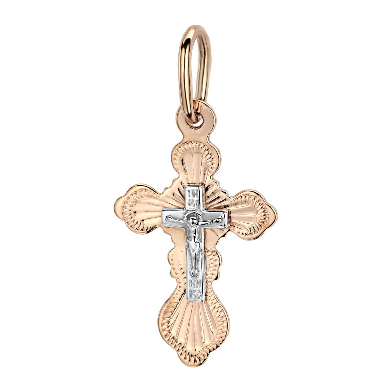 Крест нательный из двух цветов золота 585 пробы без вставок 01Р760639