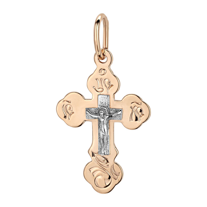 Крест нательный из двух цветов золота 585 пробы без вставок 01Р760694