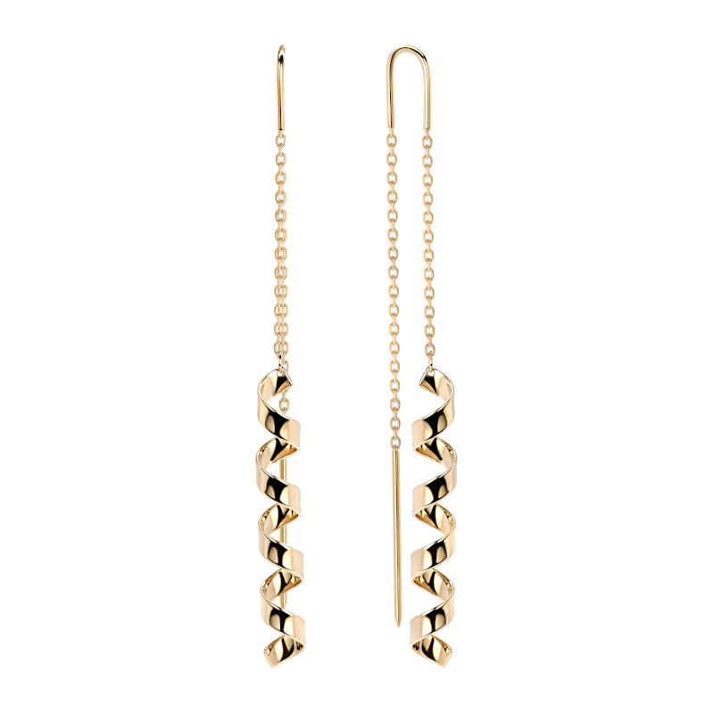 Тоненькие, невесомые серьги-цепочки из желтого золота 585 пробы привлекут внимание к изяществу Вашей шеи и будут отлично смотреться с любым нарядом. Удобная конструкция без замков. В украшении много воздуха и движения.
