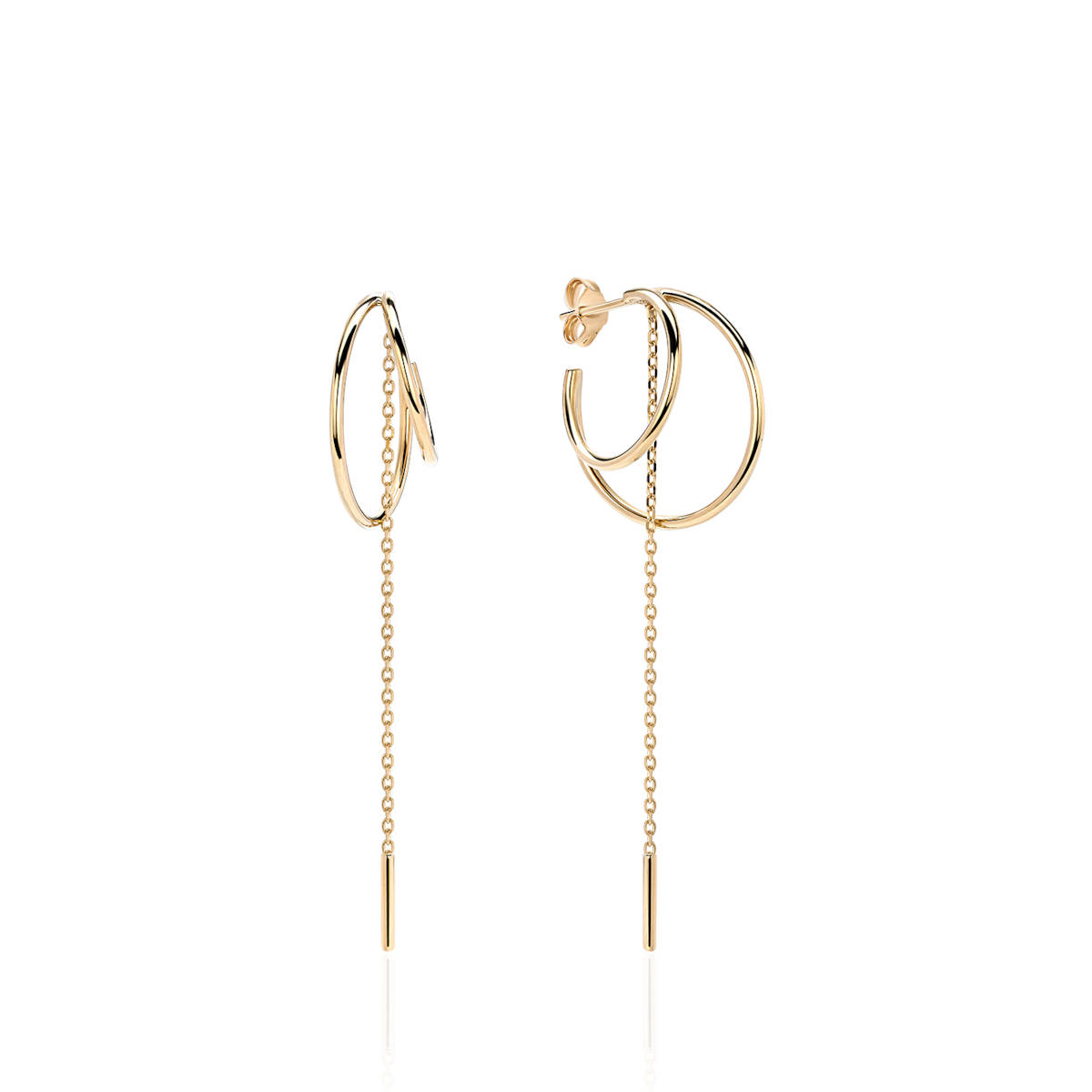 Тончайшая цепь визуально удлиняет украшение. Идеальный глянец золота и пышные формы заявляют о статусе владельца украшения. Серьги одинаково хорошо сочетаются как с повседневными образами, так и с роскошными вечерними нарядами. Геометрические линии и формы придутся по душе любителям минимализма.