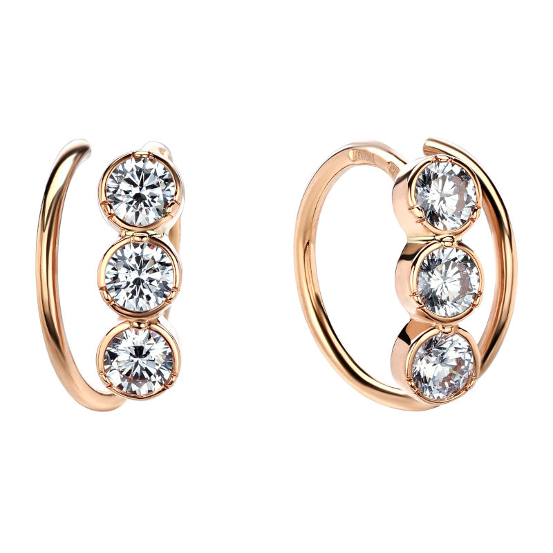 Серьги каффы без прокола из красного золота 585 пробы с фианитами 01С1112591