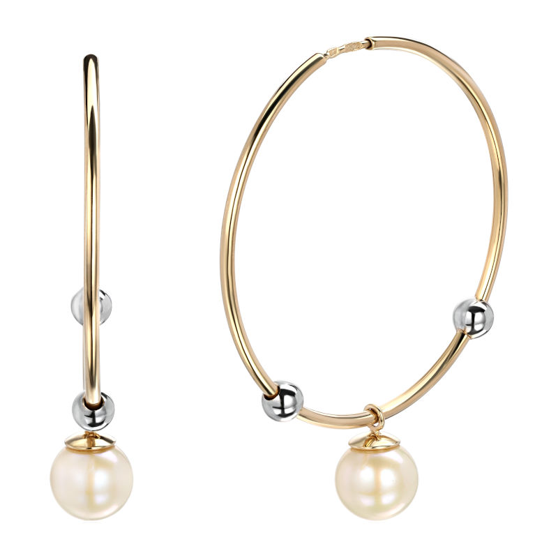 Серьги из двух цветов золота 585 пробы с жемчугом 01С3614715Ж-1