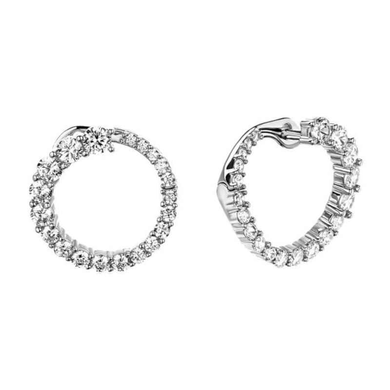 Серьги из белого золота 585 пробы с фианитами. Надежный английский замком привычен и любим многими женщинами. Это базовое украшение с элегантным дизайном, очень комфортное в повседневной носке. Фианит всего лишь был должен заменить алмаз для лабораторий. А получилось, что стал незаменимым атрибутом ювелирных украшений. Самыми популярными являются, конечно же, прозрачные фианиты. Они гармонируют совершенно с любым металлом, с любой формой изделия. Конструкция замка скроет дырку от прокола.