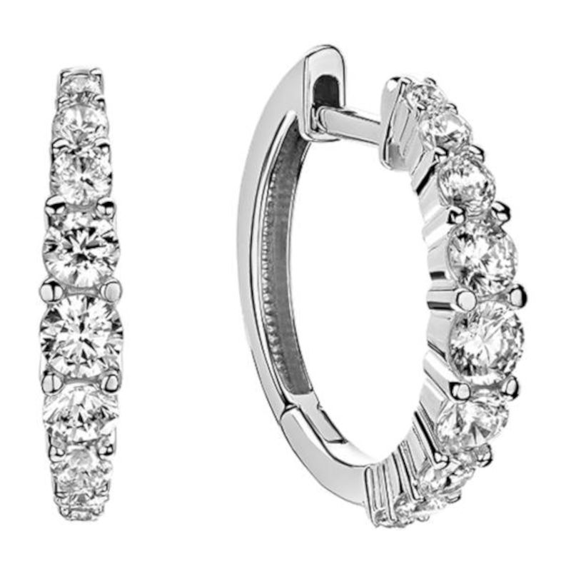 Серьги конго из белого золота 585 пробы с фианитами. Знакомая форма серег инкрустирована 18 вставками. Серьги уменьшенного диаметра, идеально подойдут на каждый день. Вы можете вести активную жизнь - заниматься спортом, ходить на работу, отдыхать на море и не думать о выборе украшения.