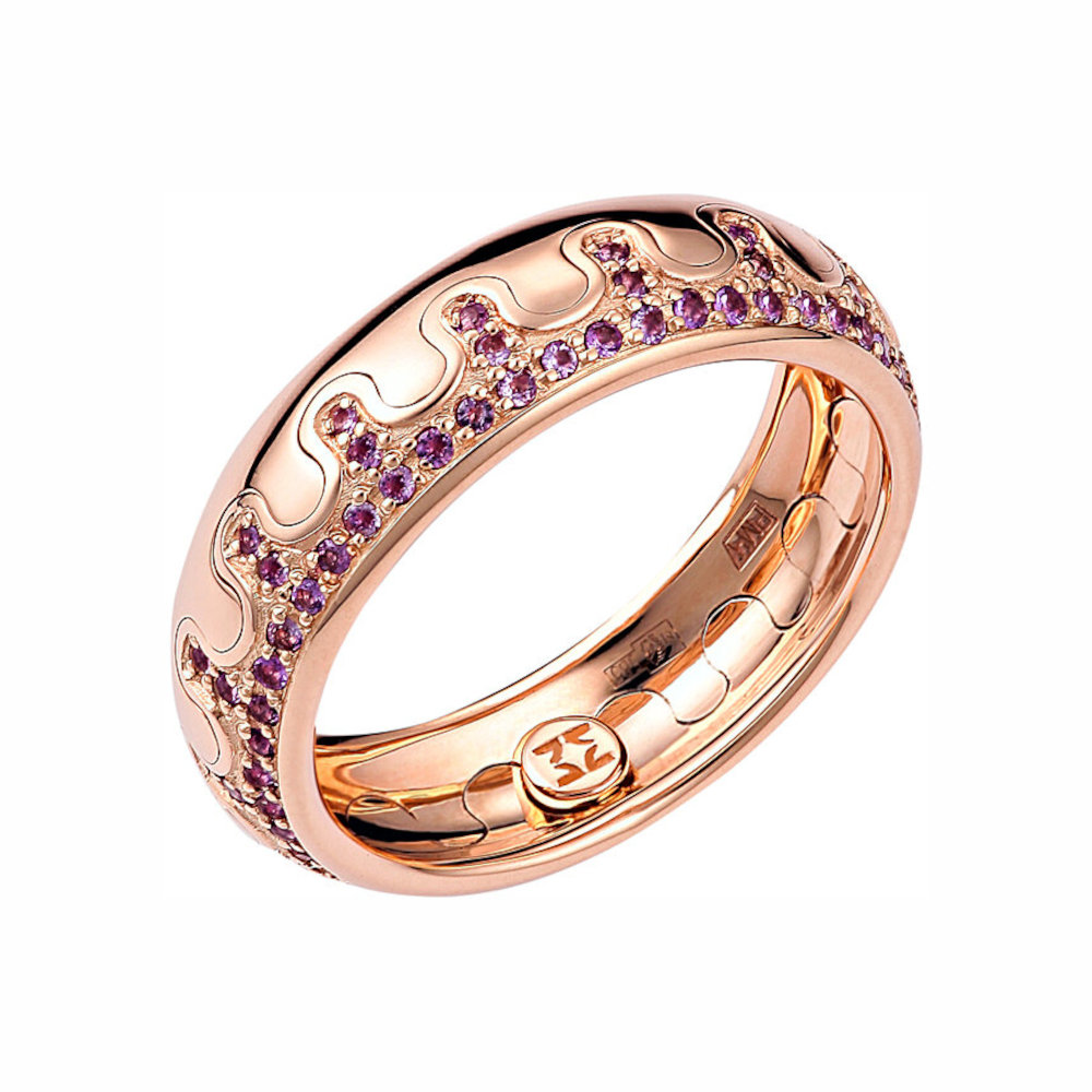 Обручальное кольцо из красного золота 585 пробы с аметистами 01О310422А