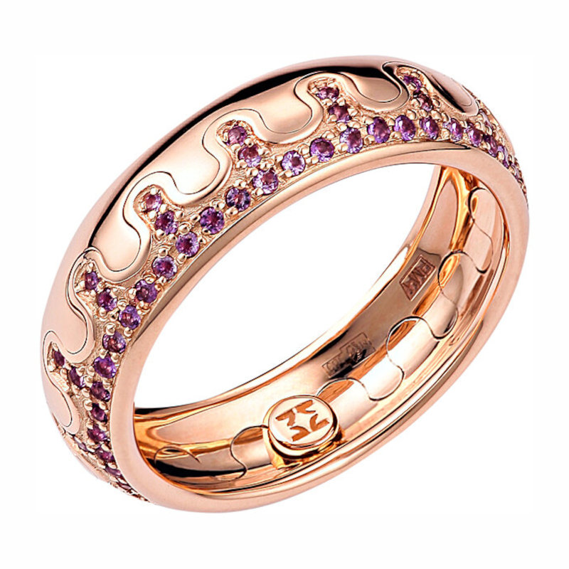 Обручальное кольцо из красного золота 585 пробы с аметистами 01О310312А