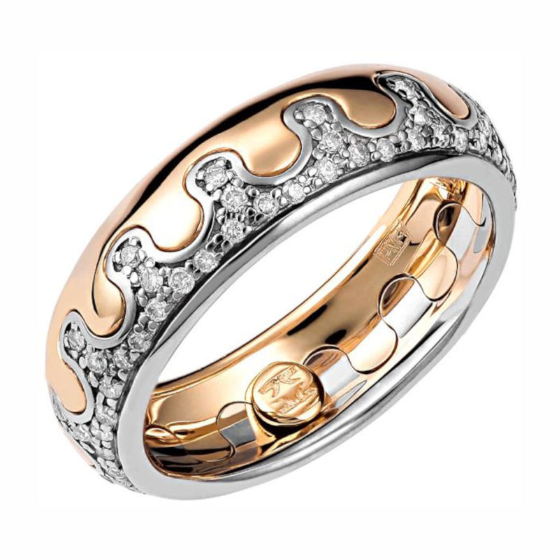 Обручальное кольцо из комбинированного золота 585 пробы с бриллиантами 01О660312ЖБ2