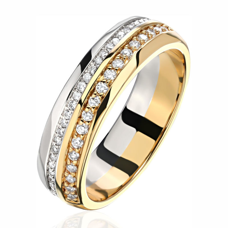 Обручальное кольцо из комбинированного золота 585 пробы с бриллиантами 01О660454Ж