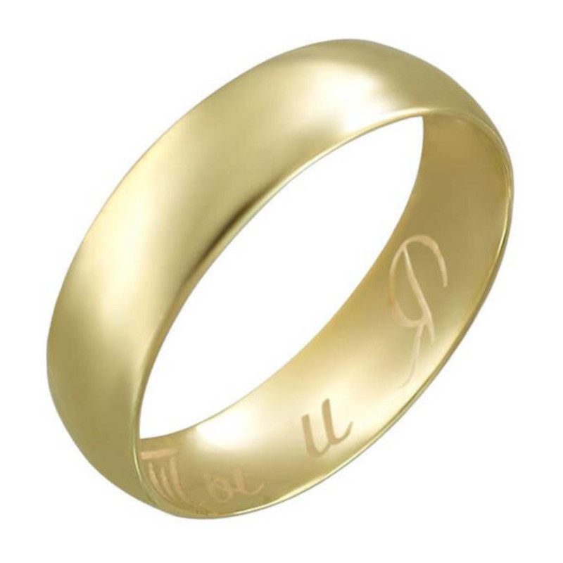 Обручальное кольцо с гравировкой "Ты и Я" из желтого золота 585 пробы 01О030277