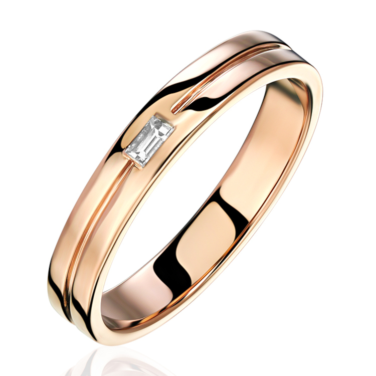 Обручальное кольцо из красного золота 585 пробы с бриллиантом 01О610490