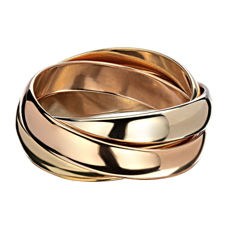 Обручальное кольцо из трех цветов золота 585 пробы без вставок 01О060269