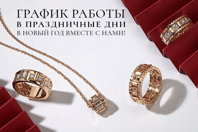 Мы ненадолго уходим на праздники, но уже спешим открыть свои двери для вас с 12 января в прежнем режиме. Сайт будет принимать ваши заказы даже в новогоднюю ночь, так что после праздников вы сможете получить свой заветный подарок. Если все еще в раздумьях насчет заказа, обращайтесь к нам в соцсетях или по телефону — менеджеры сориентируют вас и помогут выбрать подарок мечты. Мы же советуем обращать внимание на украшения из золота. Это беспроигрышный вариант символичного подарка на Новый год. Золото — символ успеха, энергии и богатства. Оно всегда выигрышно дополнит ваши праздничные образы и станет теплым напоминаем о семейном празднике.
