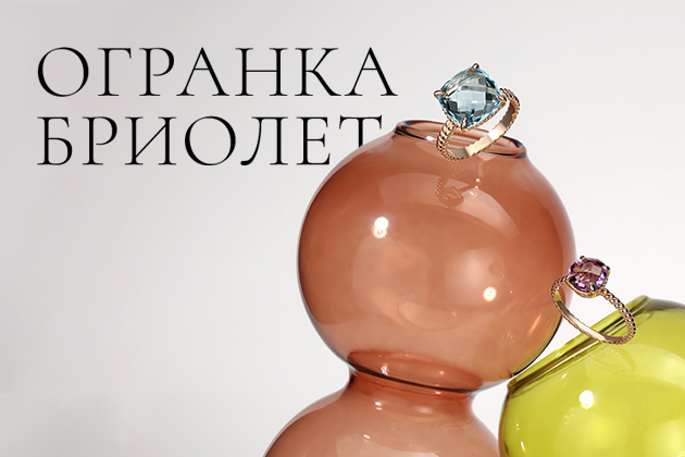 Во французском языке слово «бриолет» обозначает «огранённый, грушевидный камень». Огранка бриолет может быть на камне разной формы: начиная от округлых форм, мягкого квадрата и заканчивая грушевидной, каплевидной формой. Этот вид огранки предполагает множество ромбовидных или треугольных граней на поверхности камня, каждая из которых создает сотни мерцающих отблесков и раскрывает природный цвет камня. В этой огранке камень напоминает каплю воды – свет в камнях распределяется похожим образом, как в линзах. Но дополнительные грани на поверхности разбавляют мягкий округлый блеск геометричными переливами света. В результате камень приобретает визуальную глубину и раскрывает свой потенциал с разных сторон.